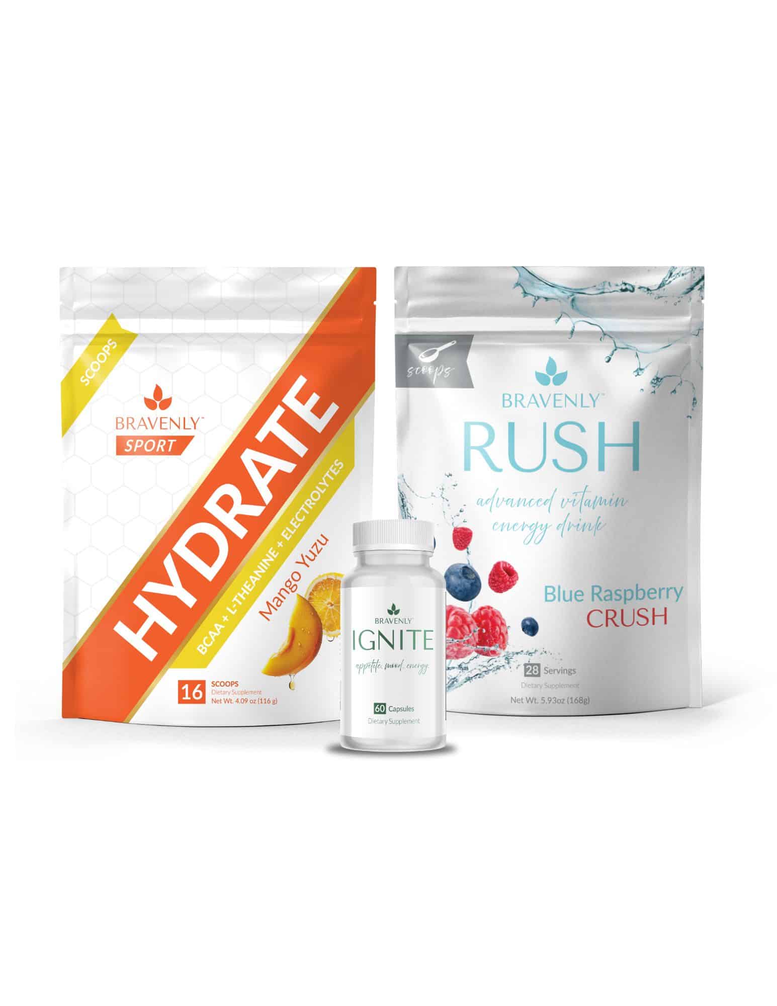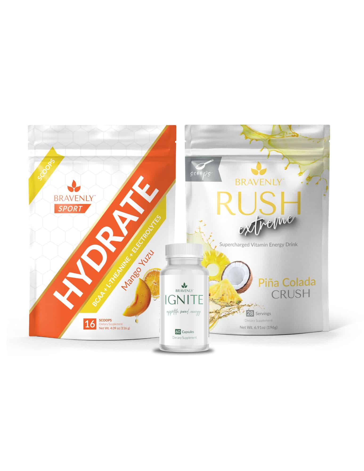 Incluye: HYDRATE – Mango Yuzu, IGNITE y tu elección de RUSH o RUSH EXTREME.